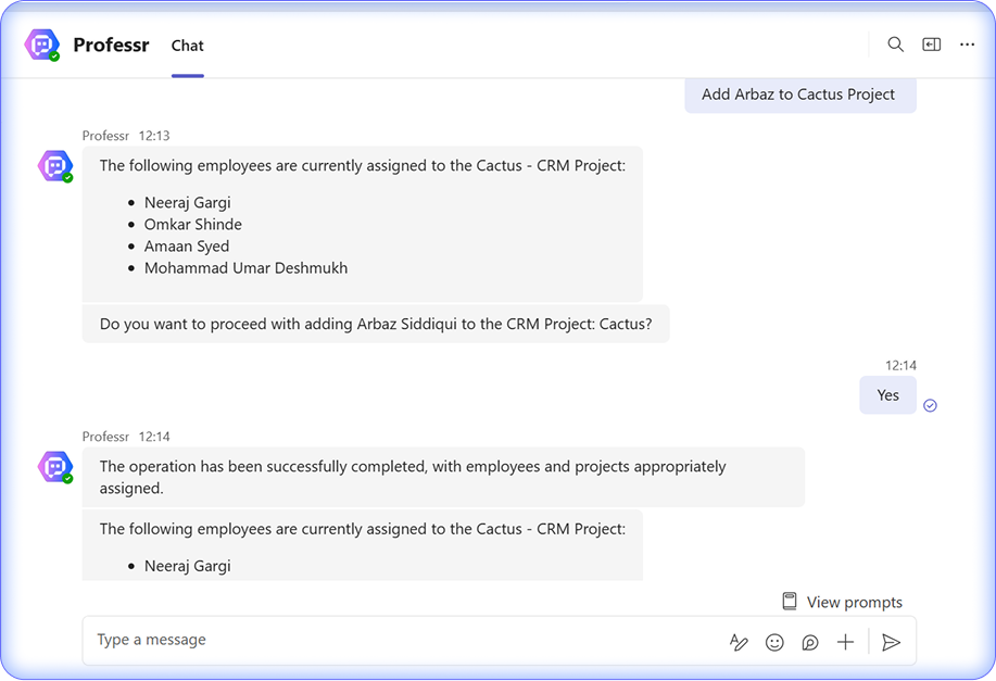 Project Managers, Business Analysts, and Account Managers can add members to projects directly through the chatbot